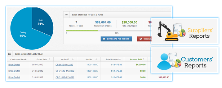 Print to PDF, profit and loss statements. Ability to search reports from suppliers and customers to job numbers, invoice numbers, quote numbers, supplier or customer names, search given dates and much more to keep your finger on the pulse! Shows complete 'Profit and Loss' statements for Accountant and of course you can 'Export' to .CSV file for your Accountant for Tax filing.