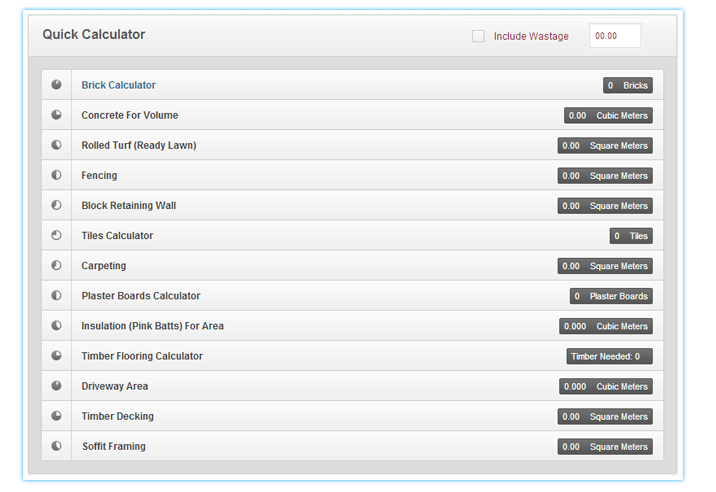 Use quick calculations for working out anything from fencing, carpeting, house insulation, decking, drive way areas, and a host of other every day calculations that are a must have for contractors, tradies and builders, even for your 'Home Renovator' or DIY'er can use this tool!.